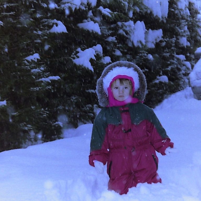 Marie, combi de ski et cheveux...cachés sous le bonnet.